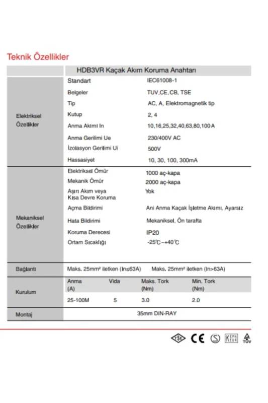 HİMEL TRİFAZE KAÇAK AKIM KORUMA ŞALTERİ 6ka 30ma 40 A 3p+N Kaçak Akım Rölesi TSE CE