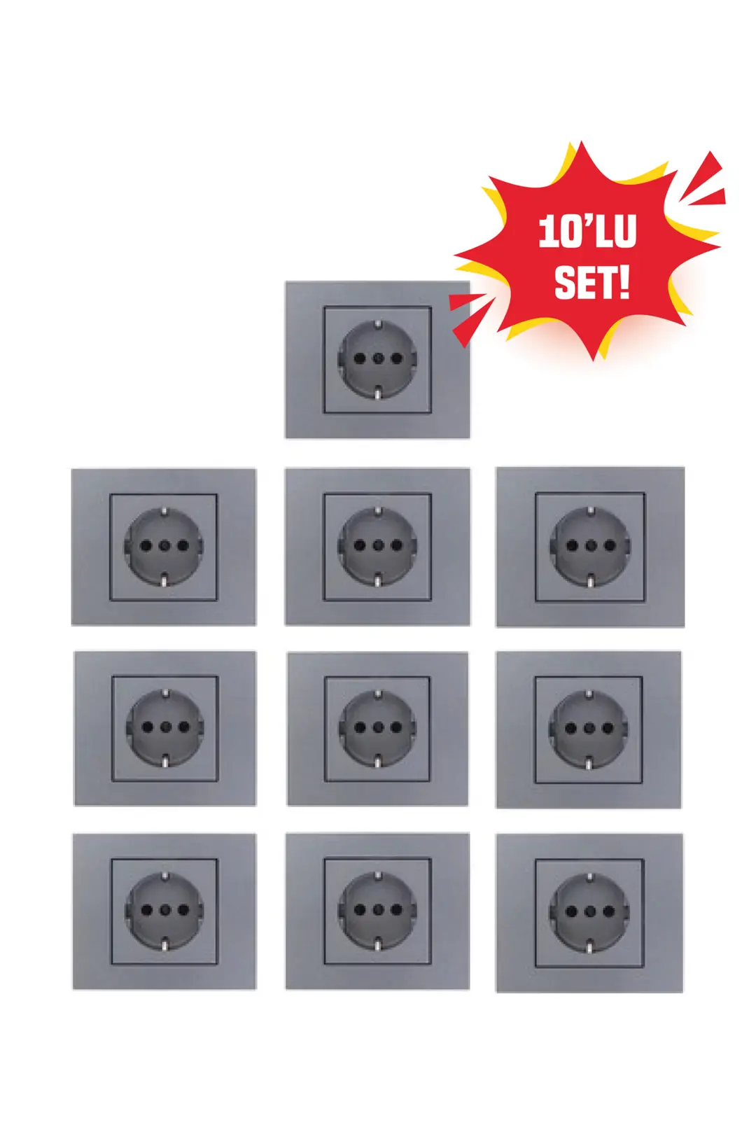 Ovivo Grano Füme Topraklı Priz 10 Adet Çerçeve Dahil